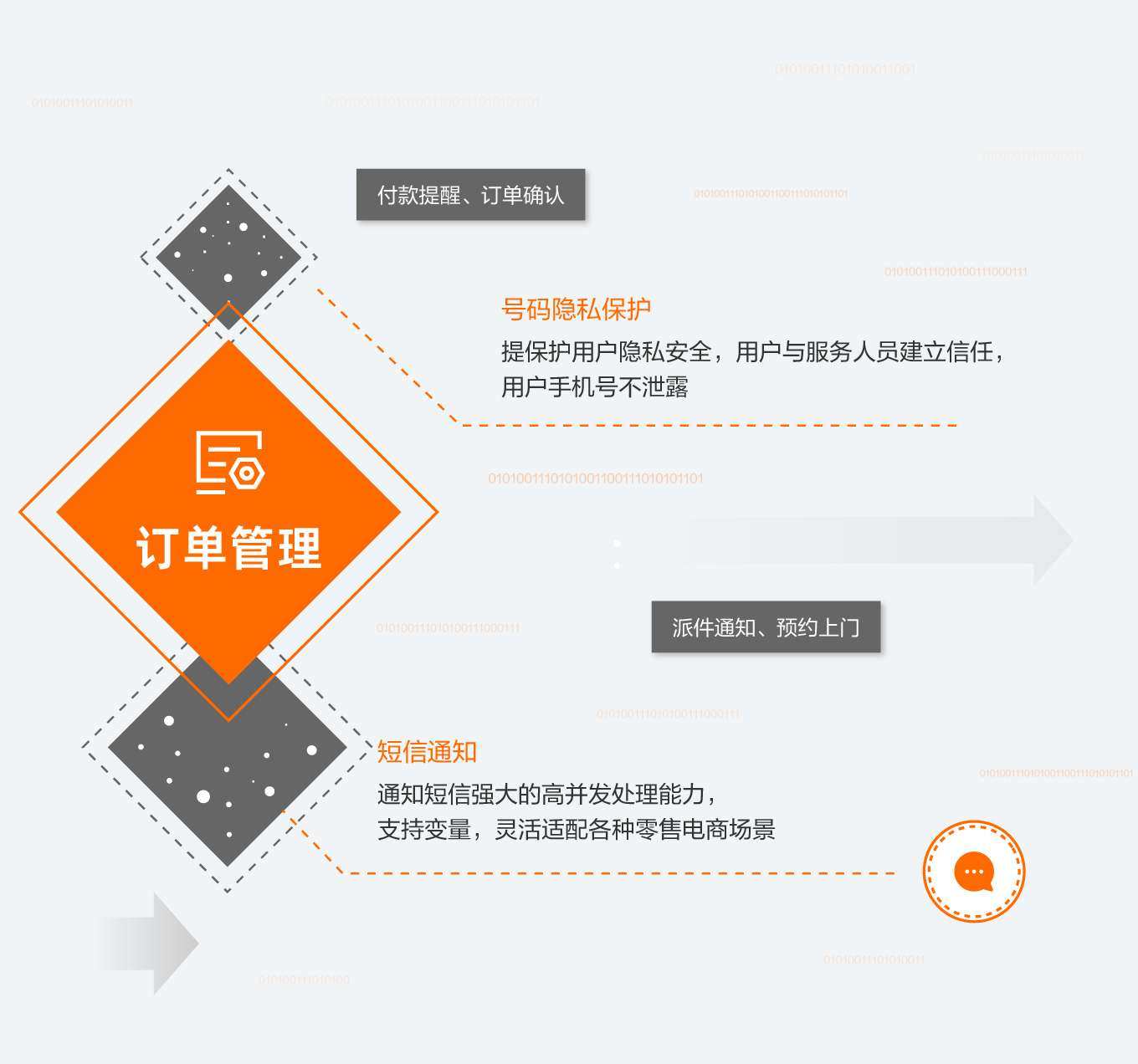 通知短信强大的高并发处理能力,支持变量,灵活适配各种零售电商场景
