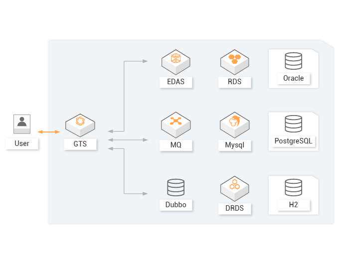 全局事务服务(Global Transaction Service ,简称GTS)用于实现分布式环境下特别是微服务架构下的高性能事务一致性,可与 RDS、MySQL、PostgreSQL 等数据源,Spring Cloud、Dubbo、EDAS 及其他 RPC 框架,消息队列等中间件产品配合使用,实现分布式数据库事务、多库事务、消息事务、服务链路级事务及各种组合。