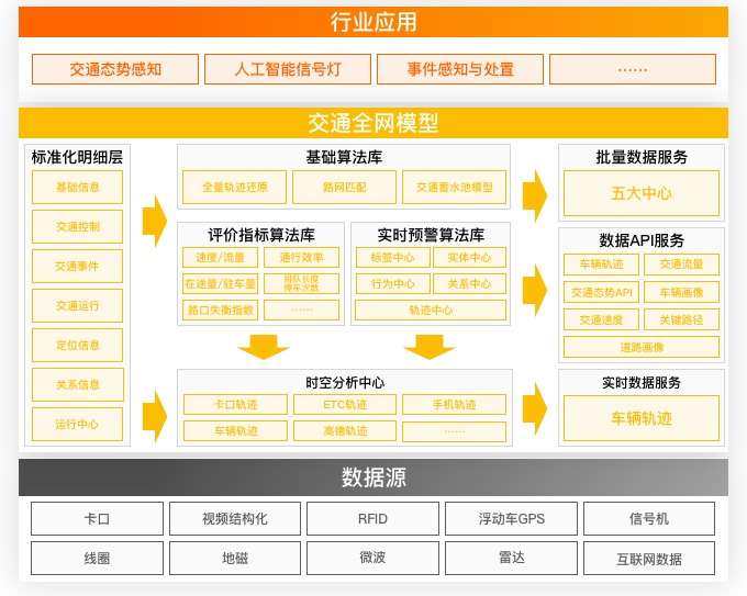 提供数据治理及融合分析平台、控制优化引擎、实时仿真引擎,为各类交管业务系统提供数据指标服务、决策分析、方案优化。