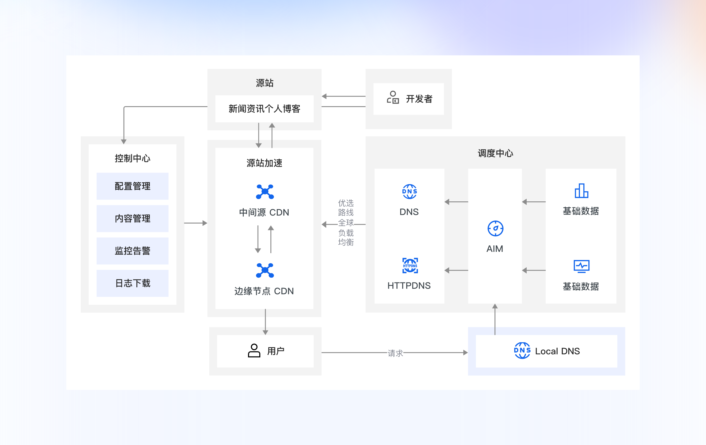 网站流量激增时,用户请求量、下行流量带宽增高,服务器压力大,站点响应慢。CDN通过全球3200+节点及智能调度系统,让用户可以就近访问海量静态资源。