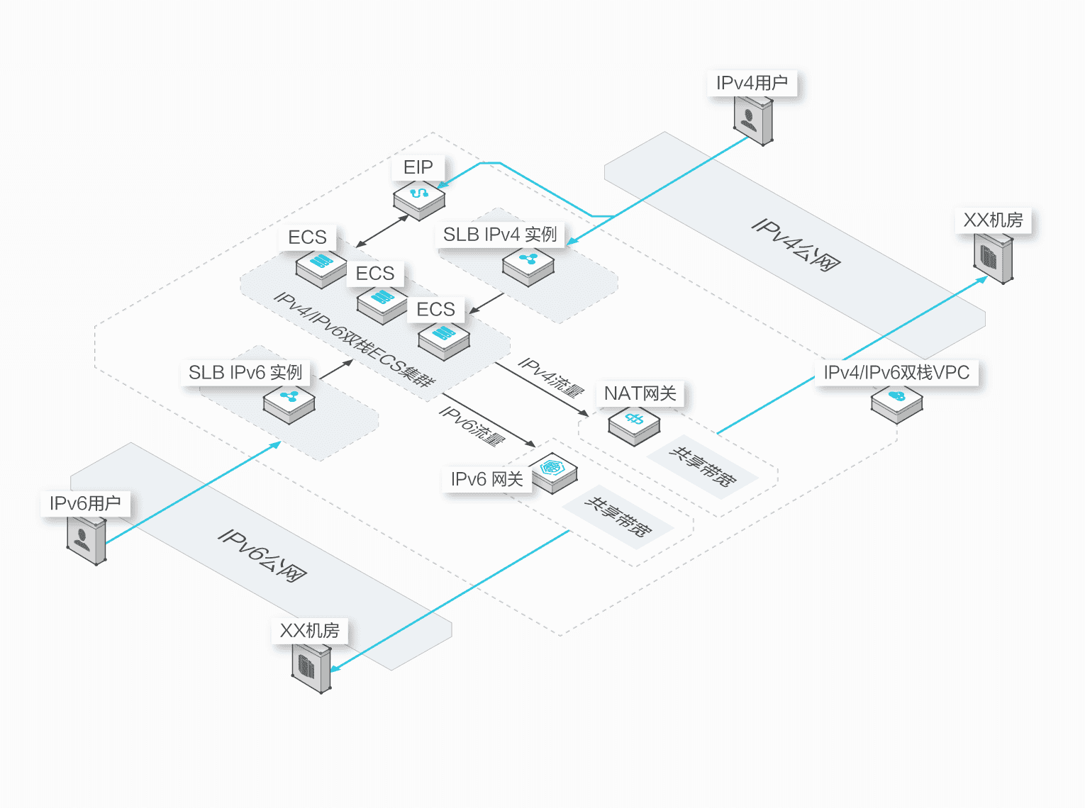灵活管理IPv6公网带宽,满足IPv6私网通信和公网通信需求