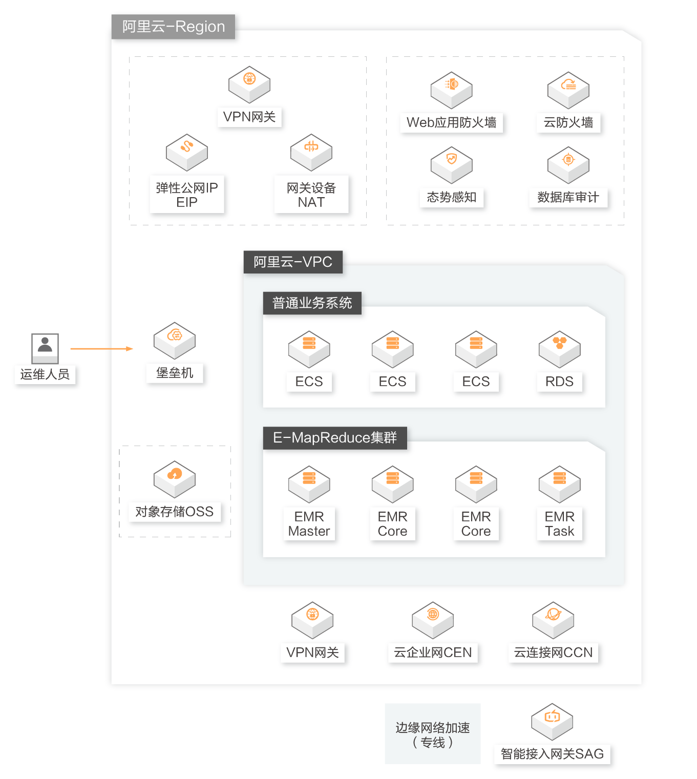 基于阿里云 E-MapReduce 、OSS 、边缘网络加速等产品及服务,帮助自建 Hadoop 用户快速构建云上半托管开源大数据平台,在保持原自建 Hadoop 组件使用习惯延续的同时,充分利用云上服务特点,更加便捷地迭代企业大数据平台架构,聚焦业务价值开发。