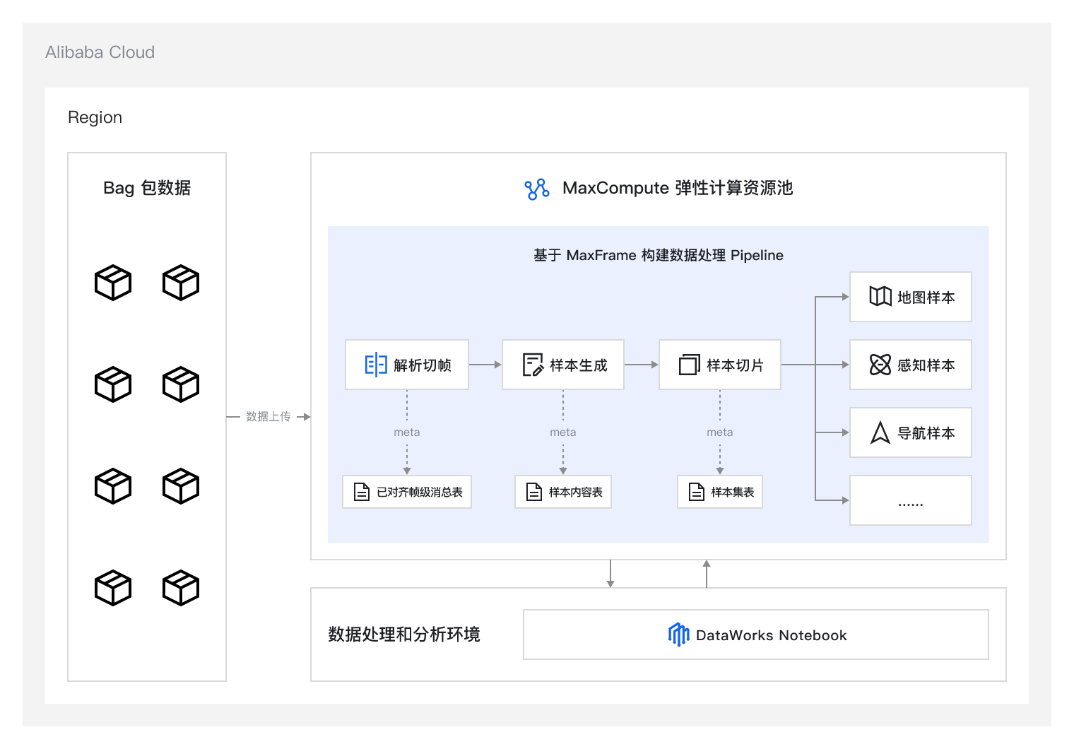 本方案基于 MaxCompute 云原生平台,通过 MaxFrame 分布式计算能力实现海量异构数据自动解析,结合 DataWorks 构建端到端处理流水线,企业可高效完成从数据采集到模型训练的全流程管理,利用弹性资源调度显著提升处理效率并降低资源成本。